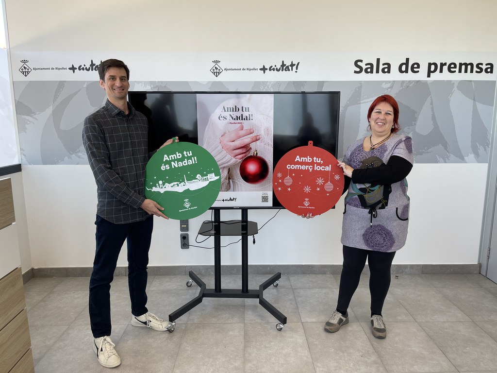 La regidora de Comerç, Eva Herrera, i el regidor de Cultura, Patrimoni i Política Lingüística, Roger Bayó, han presentat aquest passat dilluns, 20 de novembre, la campanya de Nadal d'enguany, així com les novetats i el programa d'activitats. Sota el lema "Amb tu és Nadal!", es vol reconèixer "que, més enllà de la feina que es fa des de l'Ajuntament i des de les entitats, és la ciutadania la que, amb la seva participació, fa que a Ripollet es visqui Nadal amb alegria i il·lusió, amb gent al carrer i també al comerç local", ha explicat la regidora. Una campanya amb què es vol agrair la implicació de la ciutadania, "perquè són els veïns i veïnes de Ripollet els que fan Nadal i fan comerç". El programa compta amb una trentena d'activitats i diverses novetats, tant comercials com culturals, on no faltarà la gastronomia típica d'aquesta època i els pessebres, que enguany celebren els 800 anys d'història.