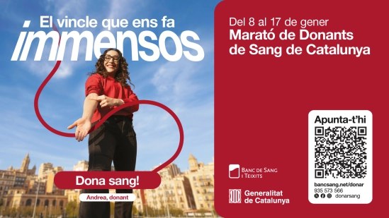 Sota el lema “el vincle que ens fa immensos”, la Marató d’enguany posa el focus en aquest gest solidari i altruista que és donar sang i com ens fa d’immensos com a persones.