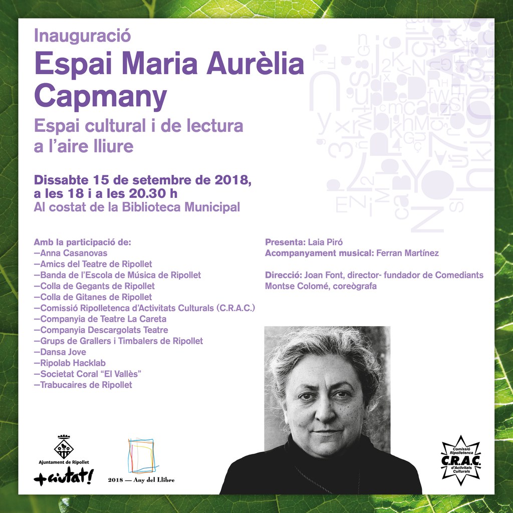 La Comissió Ripolletenca d'Activitats Culturals (CRAC) va proposar destinar un espai a la ciutat a l'escriptora M. Aurèlia Capmany. La proposta va sorgir en motiu del centenari del naixement de l'escriptora, política i feminista i de la celebració de l'Any del Llibre a Ripollet. Amb l'espai Maria Aurèlia Capmany, com altres iniciatives desenvolupades en aquest Any del Llibre, s'assoleixen varis objectius que perduren més enllà d'una commemoració: construir polítiques públiques entorn el foment de la lectura, recuperar espais públics de Ripollet a través de la cultura, incrementar la programació cultural i garantir l'accés a la lectura amb més equipaments dels ja existents En paral·lel, també es dona resposta a una petició reivindicada per diverses veus sobre la necessitat d'augmentar la presència de les dones al nomenclàtor i als espais públics de Ripollet.