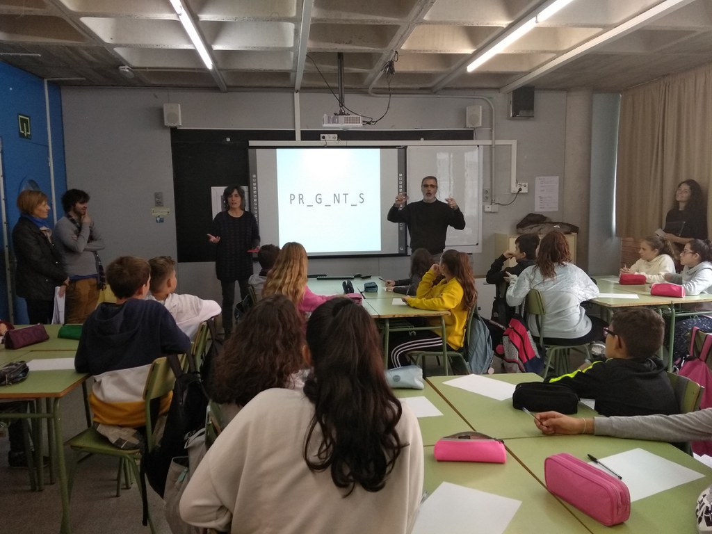 Emparaulem-nos proposa explorar els usos i les possibilitats de la paraula parlada i escrita amb el suport de referents de diferents àmbits, per prendre consciència del seu poder i identificar els efectes del seu ús. El projecte, totalment subvencionat per la Diputació de Barcelona, es desenvolupa al llarg de tot el curs escolar i inclou, a banda dels tallers de suport i dinamització, una visita a la Biblioteca de Ripollet i una altra a la Biblioteca Nacional de Catalunya. El passat dijous, 8 de novembre, es van començar a fer les presentacions dels projectes als grups participants, en aquest cas als alumnes de 1r de l'Institut Can Mas.