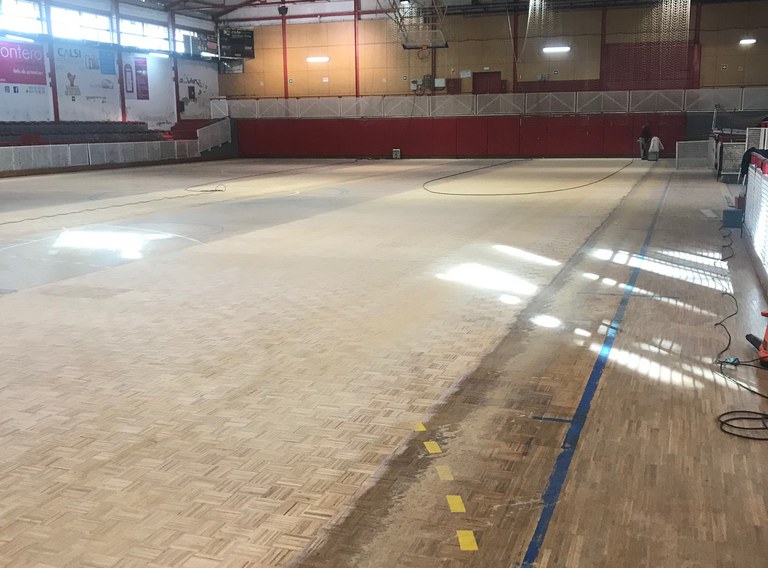 Concretament, s'està procedint a l'arranjament i pintat de les graderies i del terra de la pista principal i annexa, l'arranjament del terra del vestíbul, la substitució d'armaris d'extintors i mànegues contra incendis i el canvi de focus amb llums led. Un cop finalitzats aquests treballs, es procedirà a la pintura de les parets interiors de tota la instal·lació. El Patronat Municipal d'Esports va informar de les obres amb anterioritat a les entitats esportives afectades, reubicant algunes activitats previstes.