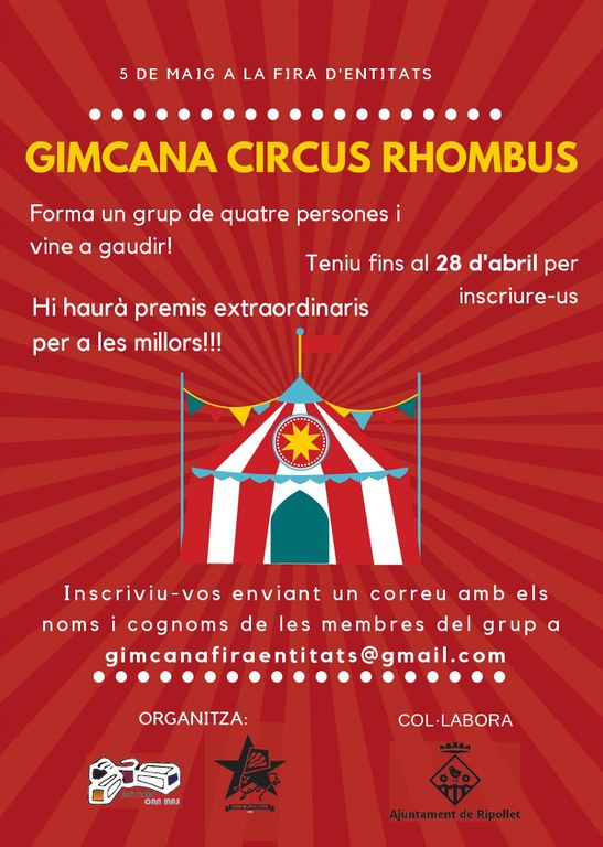 Aquest és el nom de la gimcana que el servei comunitari de l'Institut Can Mas i el Centre d'Esplai l'Estel han organitzat pel pròxim 5 de maig durant. Es tracta de 15 proves relacionades amb les arts escèniques. Per a participar-hi, cal inscriure's en grups de quatre persones, abans del 28 d'abril, al correu electrònic gimcanafiraentitats@gmail.com.