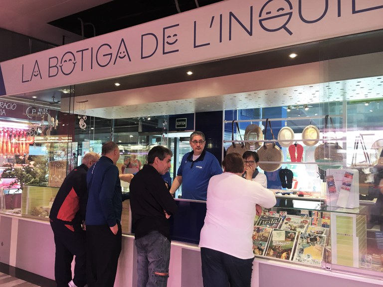 Des del passat 21 de maig, cada dimarts i dijous al matí, que són els dies que obre La Botiga de l'Inquiet al Mercat Municipal, Catalònia Fundació ofereix l'oportunitat de veure el procés d'elaboració dels diferents productes que venen. Amb l'objectiu de mostrar les capacitats de les persones usuàries d'Aspasur, la majoria de tallers són d'artesania, però també hi ha programats d'altres tallers dirigits a paradistes i usuaris, com ara el de Llengua de signes.