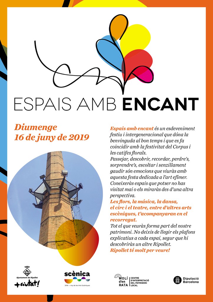 La Regidoria de Patrimoni i Memòria Històrica, en col·laboració amb entitats, veïns i artistes locals, ha organitzat una nova edició d'aquesta celebració dels Espais amb Encant, coincidint amb el Corpus i les catifes florals. L'objectiu d'aquest esdeveniment és dinamitzar el centre històric de Ripollet i mostrar al públic el seu encant patrimonial. Aquest any, el fil conductor dels Espais seran les arts escèniques en els seus diferents vessants amb diversos espectacles programats durant el matí de diumenge, 16 de juny.