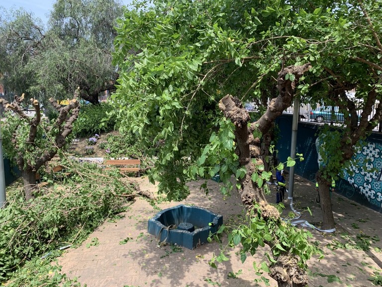 La retirada dels arbres malalts del municipi va acompanyada de les actuacions pertinents de substitució de l'arbrat i adequació de l'espai públic per al normal desenvolupament de l'activitat quotidiana als parcs i carrers de Ripollet.