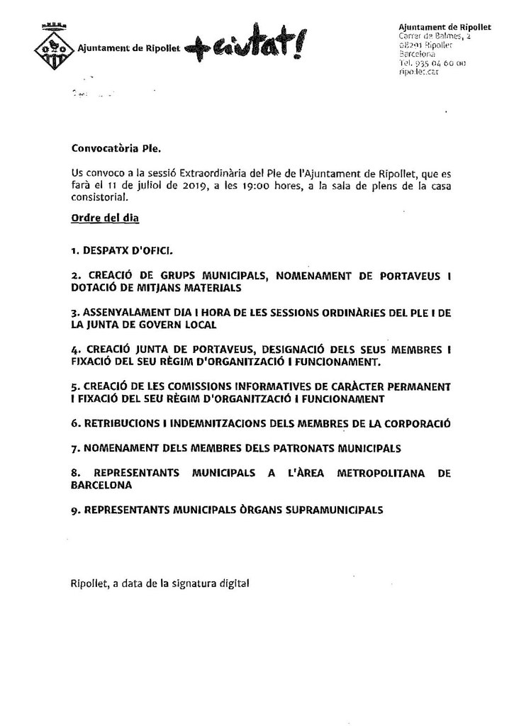 Les persones interessades poden assistir al Ple o seguir-lo en directe a través de Ripollet Ràdio (91.3 fm), ripolletràdio.cat i el canal de Youtube InfoRipollet.
