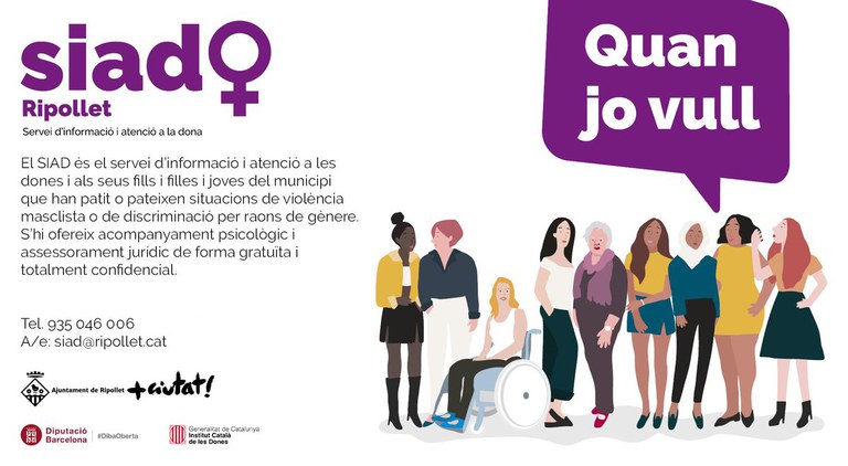 Davant l'actual situació excepcional derivada de l'emergència sanitària pel Covid-19 i a causa de la situació de vulnerabilitat que suposa el confinament a casa per a les dones que pateixen situacions de violència masclista i els seus fills i filles, l'Ajuntament de Ripollet vol recordar que es manté l'atenció telefònica i per correu electrònic del Servei d'Informació i Atenció a les Dones de Ripollet (SIAD).