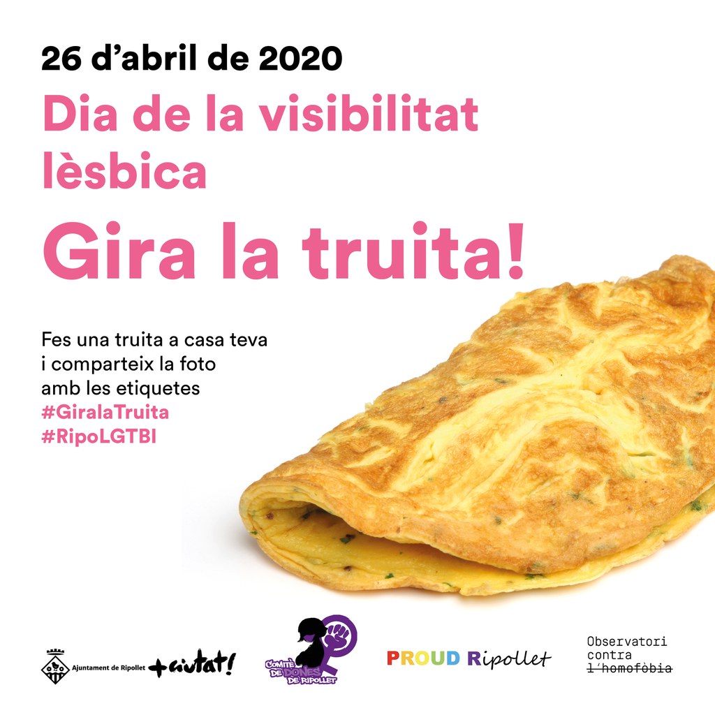 Amb motiu del Dia de la Visibilitat Lèsbica, l'Ajuntament de Ripollet se suma a les reivindicacions de col·lectius i entitats feministes i LGTBI com son l'Observatori Contra l'Homofòbia, Proud Ripollet i el Comitè de Dones de Ripollet. Diumenge es portarà a terme un acte de visibilització a les xarxes socials sota el lema "Gira la truita!".