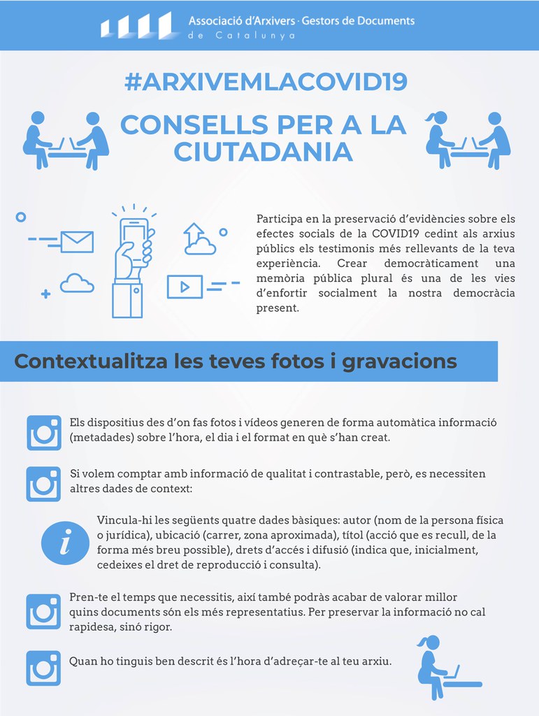 L'Arxiu Municipal de Ripollet s'ha sumat a la campanya #ArxivemlaCOVID19, promoguda per l'Associació d'Arxivers - Gestors de Documents de Catalunya arreu del país, per poder conservar i documentar el moment històric que estem vivint, provocat per la COVID19. Es per això que es demana a la ciutadania que no llenci o esborri aquells dibuixos, cartes, pancartes o qualsevol altre document textual o gràfic, així com fotos o vídeos enregistrats amb motiu d'aquesta pandèmia, per tal de cedir-los a l'Arxiu Municipal.