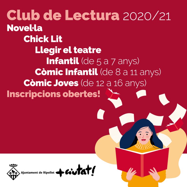 L'oferta de Clubs de lectura i la resta d'activitats de la Biblioteca formen part de Ripollet és cultura, la guia de formació, serveis i recursos culturals als equipaments públics. Actualment, només resten algunes places lliures al club de novel·la per adult. Igualment, les persones interessades poden apuntar-se i resten en reserva.
