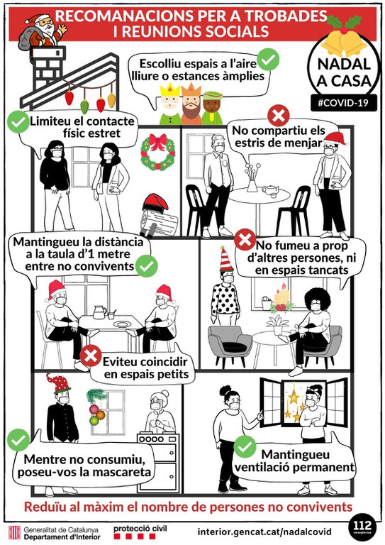 - Els dies 24, 25, 26 i 31 de desembre, i 1, 5 i 6 de gener, es permeten trobades socials d'un màxim de 10 persones de 2 bombolles de convivència.