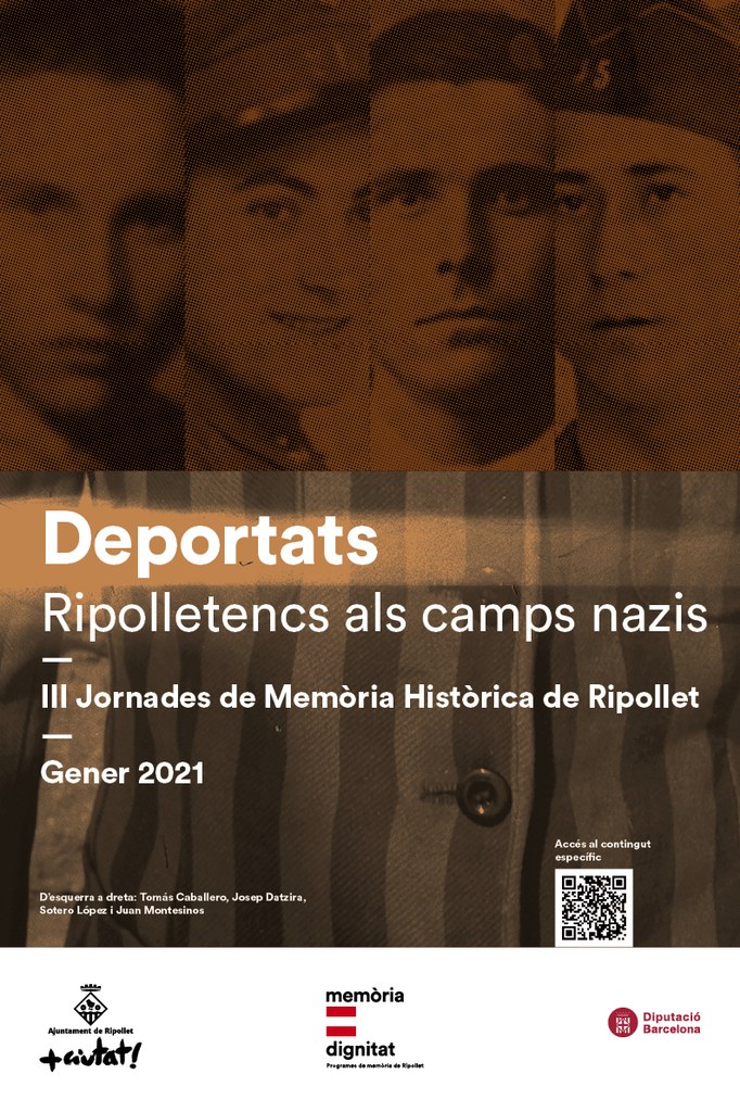 El tret de sortida serà l'exposició 'Deportats. Ripolletencs als camps nazis. 1940-45', que s'instal·larà a la Plaça d'en Clos a partir de dimecres i que està previst que itineri per diferents espais del municipi a partir de finals de febrer. Part dels continguts d'aquesta mostra són del Museu d'Història de Sabadell, i ens permetrà conèixer la història dels 5 deportats ripolletencs: Tomás Caballero Vico, Josep Datzira Casamitjana, Juan Montesinos Uribe, Sotero López Tello, i Pau Pallàs Alsina. Aquests actes complementen la xerrada adreçada al professorat dels instituts que es va fer el passat novembre sobre 'La deportació republicana als camps nazis', a càrrec d'Enric Garriga, president d'Amical Mathausen.