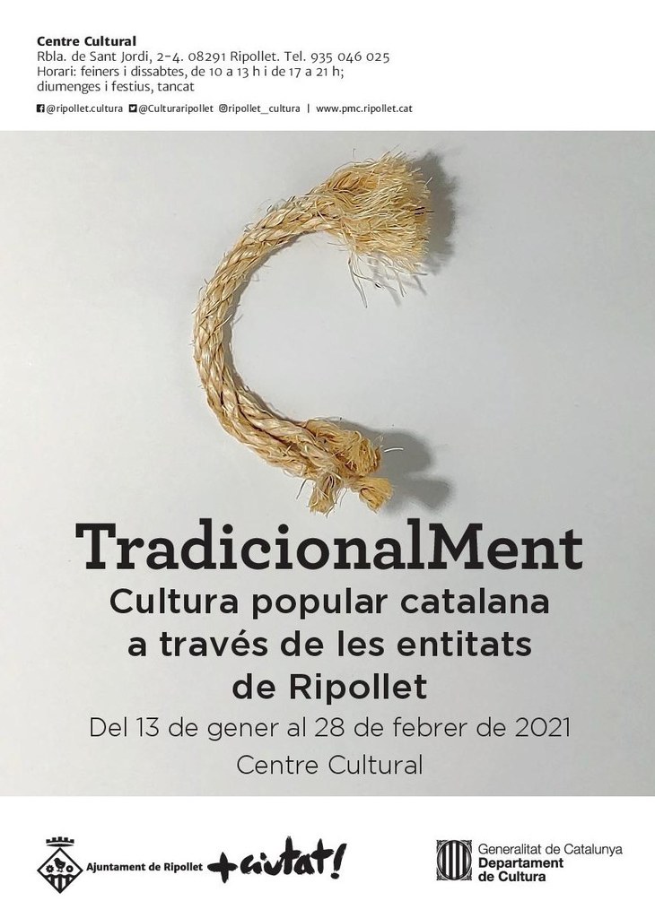 L'exposició, produïda pel Centre d'Interpretació del Patrimoni Molí d'en Rata, forma part del Pla de Xoc, de reparació de la cultura local. El Centre Cultural obre les dues sales d'exposicions per acollir la mostra 'TradicionalMent', on podem apropar-nos a una quinzena d'entitats locals de cultura popular. La mostra, que és una de les actuacions del Pla de Xoc, vol donar un espai a les diferents entitats en una situació actual on han quedat suspeses totes les activitats al carrer, seguint la línia que es va fer amb l'Obrim l'Estiu. Així, l'espai està distribuït en diversos àmbits: la imatge festiva dels gegants de Ripollet, la Xamuskina, i el Poll Foll; les manifestacions artístiques amb els pessebres i les catifes florals; la dansa de les gitanes i les sardanes; la música de les gralles i el cant coral; el foc i els trabucs; els carros de Sant Antoni Abat; el teatre amateur i el món casteller. Tots ells explicats a través de les entitats, actuals i algunes inactives, que a Ripollet mantenen aquestes manifestacions i les fan créixer en la nostra societat.