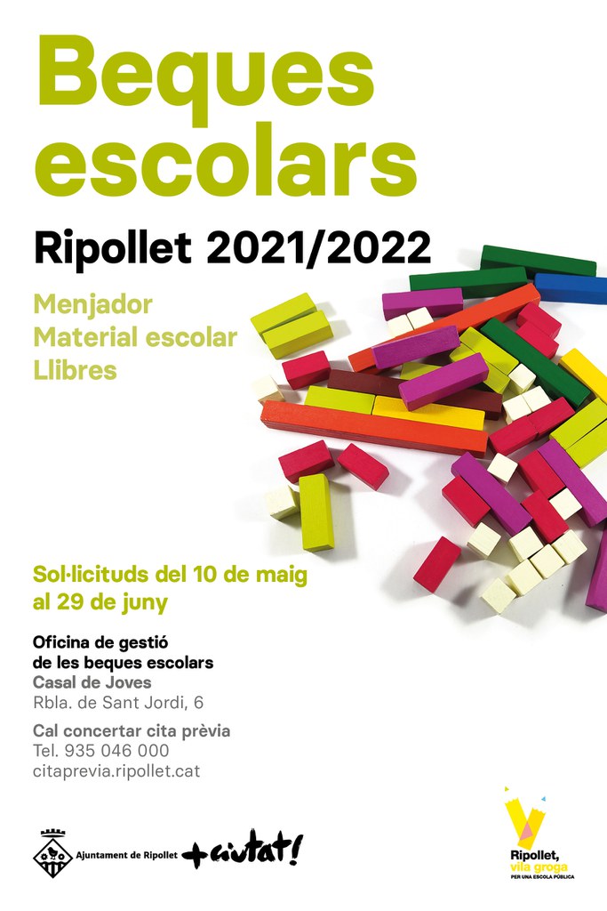També es pot fer de forma presencial, a l'oficina provisional de l'OAC per a la campanya de beques escolars de l'Ajuntament de Ripollet, ubicada extraordinàriament a la Rbla. de Sant Jordi, 4 (Casal de Joves). En aquest cas, és obligatori demanar cita prèvia de forma telemàtica o per telèfon, al 935 046 00.