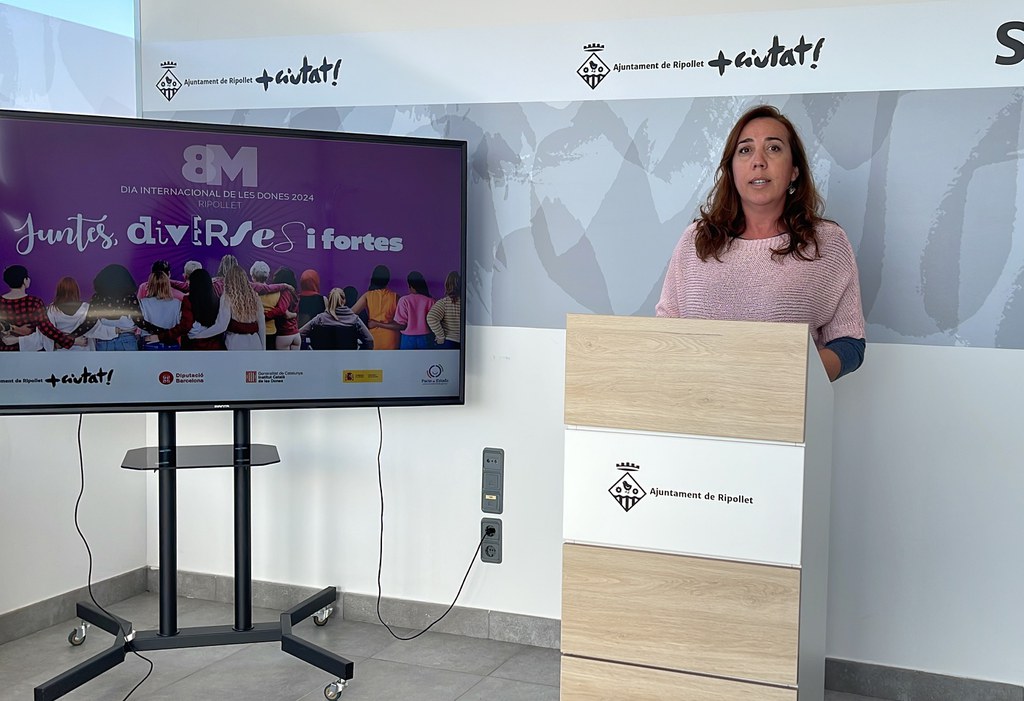 Durant tot el mes de març, la ciutadania està convidada a participar i sumar-se a la lluita per la igualtat de drets, amb motiu del 8M Dia internacional de les dones, que a Ripollet, enguany, porta per lema ‘Juntes, diverses i fortes’. Tal com va explicar la regidora d’Igualtat i Feminismes, Montse Arráez, en roda de premsa, vol dir “juntes, perquè totes dones juntes és com tenim la força; diverses, perquè la casuística de cada una és especial, amb la seva interseccionalitat, la seva diversitat, les seves característiques i volem reflectir que la lluita és per a totes dones, i fortes, perquè només amb aquesta unió, tenint en compte totes les perspectives, és com aconseguirem realment la igualtat de drets, en tota la seva complexitat”. Juntes, diverses i fortes és també una crida a la solidaritat, al reconeixement mutu i a la construcció d'un futur on cap dona es quedi enrere, amb la convicció que la nostra diversitat és la nostra major força.