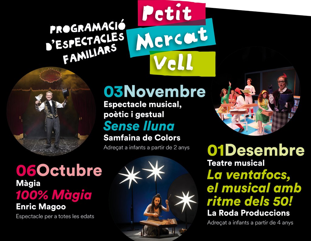 Petit Mercat Vell és un dels programes més consolidats al municipi. El curs passat hi van assistir de públic prop de 1.200 persones. Aquesta iniciativa compta amb el suport de la Diputació de Barcelona i la Generalitat de Catalunya, i complementa la programació estable d’espectacles per a públic general que gestiona l’Associació d’Espectadors del Teatre del Mercat Vell.