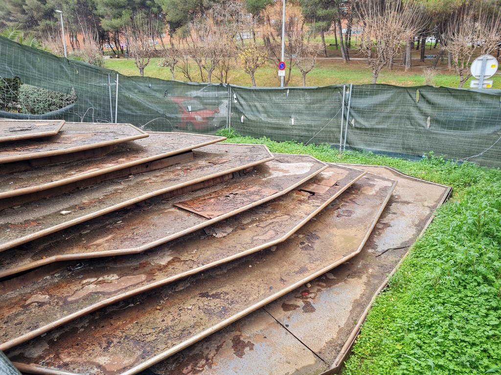 Avui 1 de febrer s’han iniciat les obres de desmuntatge de la font metàl·lica ubicada al recinte del pavelló de Joan Creus. Una actuació llargament esperada que estarà enllestida en unes tres setmanes.