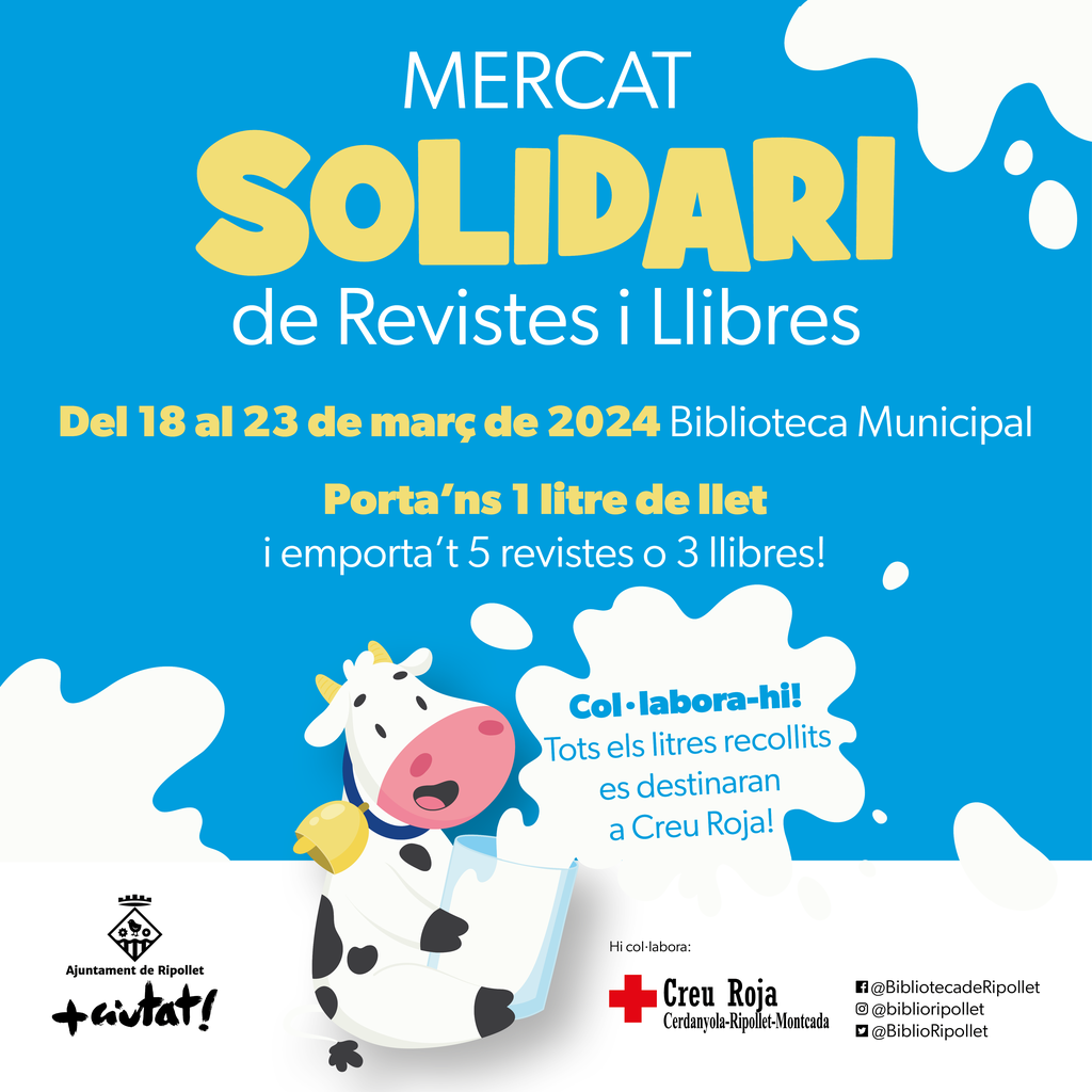 L’objectiu de modificar el Mercat de revistes i realitzar un intercanvi de llibres i revistes per llet és dotar aquesta activitat, ja força consolidada, d’un component solidari. I per això es realitza una crida als veïns i veïnes a fer créixer i participar d’aquesta iniciativa.