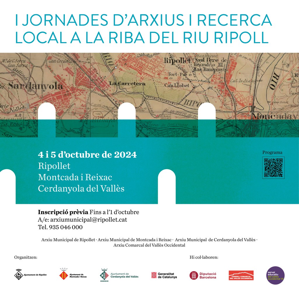 Els Arxius Municipals de Ripollet, Cerdanyola del Vallès i Montcada i Reixac, juntament amb l’Arxiu Comarcal del Vallès Occidental, han organitzat la primera edició de les Jornades d’Arxius i Recerca Local a la riba del riu Ripoll, que tindran lloc els dies 4 i 5 d’octubre. Aquestes jornades pretenen donar a conèixer els fons documentals que conserven els quatre arxius i impulsar la col·laboració en la gestió d’informació i coneixement entre els arxius, les entitats locals, els centres d’estudis i les persones investigadores que realitzen recerca local.