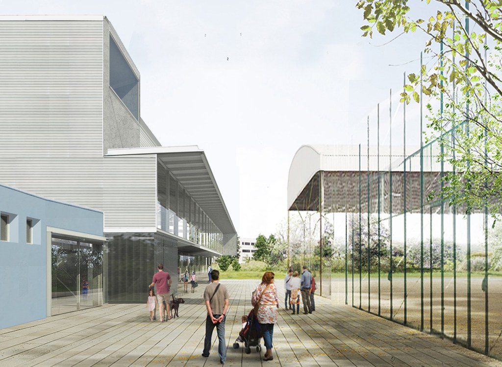 Es tracta d'un edifici lineal, amb una única entrada que donarà accés a tots els serveis, amb circuits de circulació independents i vestidors adaptats a tots els perfils de les persones usuàries, com ara famílies monoparentals o petits grups d'esportistes. L'edifici, que es farà amb materials que requereixin poc manteniment, com ara vidre i formigó vist, està pensat per rebre molta llum natural i afavorir l'aïllament i la climatització en termes de sostenibilitat. Arquitectònicament, destaca, entre d'altres, la construcció d'un pati anglès, que permetrà l'entrada de llum natural a la planta soterrani.