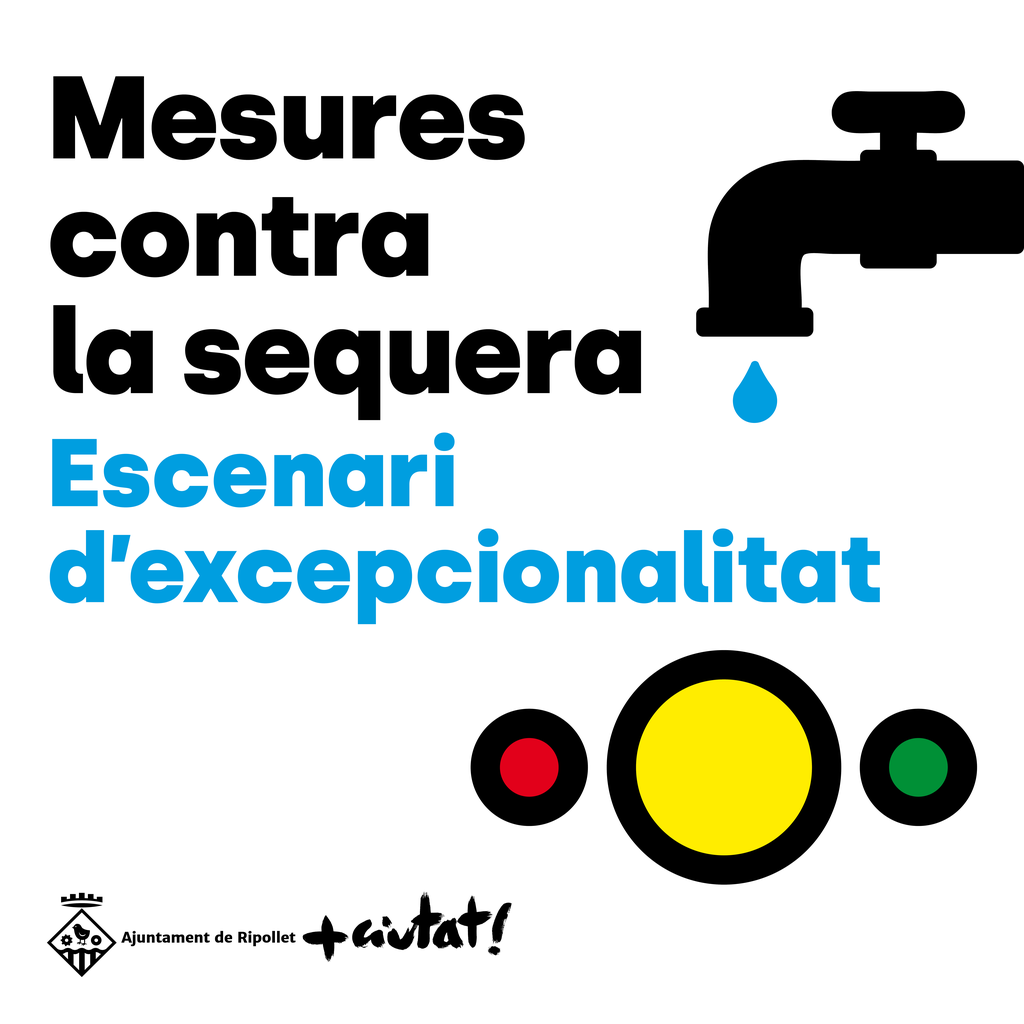 Les pluges enregistrades a finals del mes d'abril han permès una progressiva recuperació dels volums d'aigua emmagatzemada als embassaments. Per aquest motiu, l'Agència Catalana de l'Aigua, seguint els indicadors de sequera que estableix el Pla especial d'actuació en situació d'alerta i eventual sequera (PES), ha declarat, mitjançant la Resolució ACC/1608/2024, de 8 de maig, la sortida de l'estat d'emergència I per sequera hidrològica i l'entrada en l'estat d'excepcionalitat als municipis de la conca Ter Llobregat, entre ells Ripollet. Aquesta declaració desactiva algunes de les mesures aprovades el passat 1 de febrer. Les noves restriccions d'aigua en els usos urbans han estat recollides en un ban municipal, que entra avui mateix en vigor.