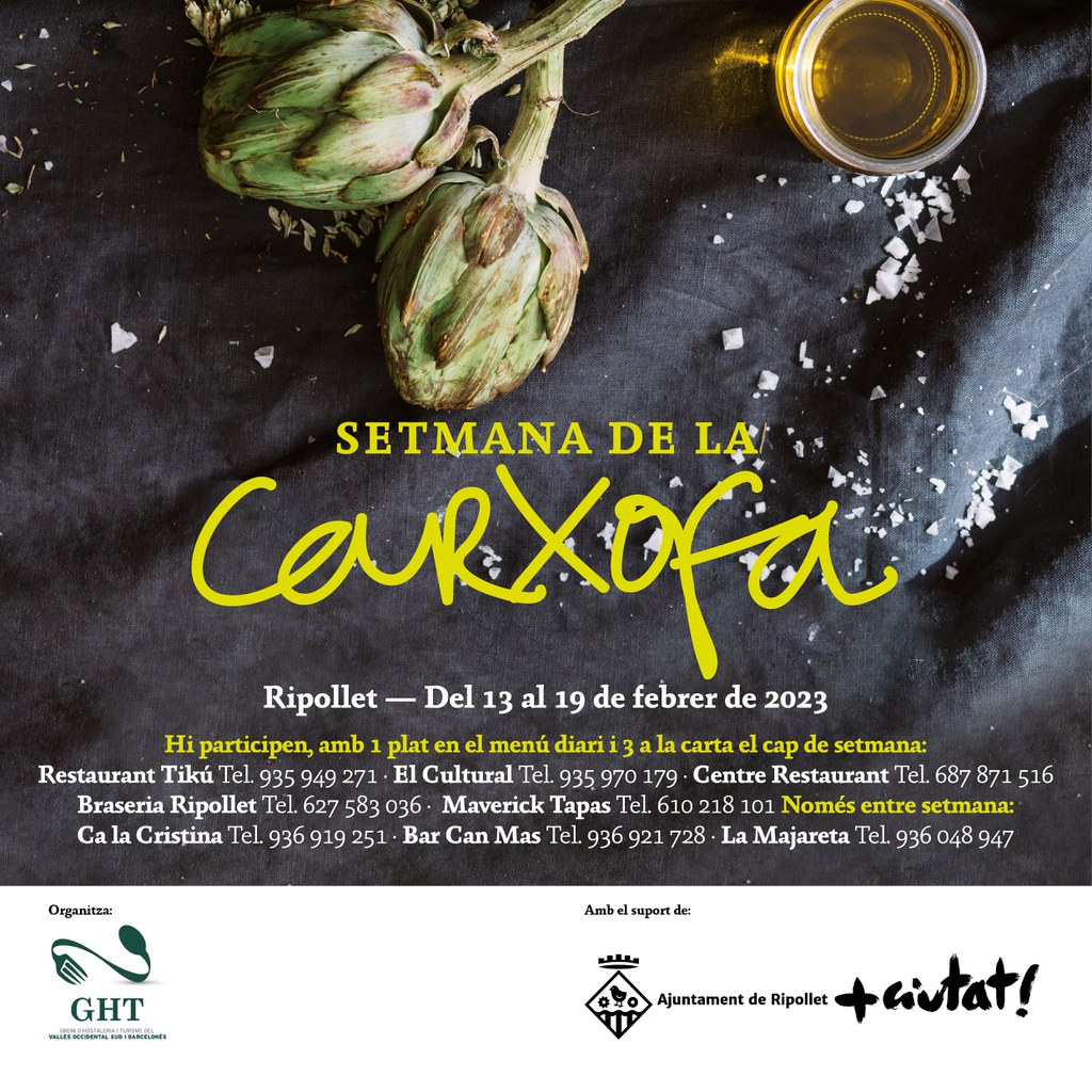Com ja s'ha fet amb altres productes de temporada, com ara els bolets o el bacallà, Ripollet celebrarà, del 13 al 19 de febrer, la Setmana de la Carxofa, a iniciativa del Gremi d'Hostaleria i Turisme del Vallès Occidental i Barcelonès i amb el suport de l'Ajuntament de Ripollet. La carxofa s'ha convertit en un element habitual de la cuina catalana, que es prepara i se serveix de diferents formes: a la brasa, arrebossada, fregida, farcida, en truita o acompanyant guisats. La seva temporada va de novembre a abril i es cultiva, especialment, a la costa mediterrània, el que la converteix també en un producte de proximitat. En aquesta nova iniciativa de dinamització de l'hostaleria local, hi participen vuit restaurants de Ripollet, que oferiran plats en el seu menú diari o en la carta del cap de setmana, amb la carxofa com a ingredient protagonista.