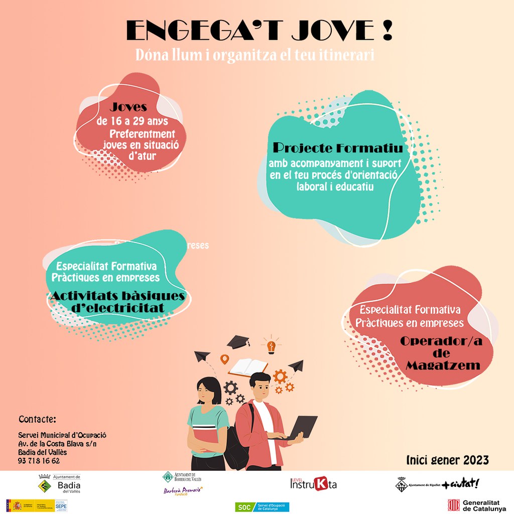 Les persones joves interessades s’han de posar en contacte amb Ripollet Impulsa de l’Ajuntament de Ripollet, al telèfon 935 807 642 o al correu electrònic orientacio@ripollet.cat