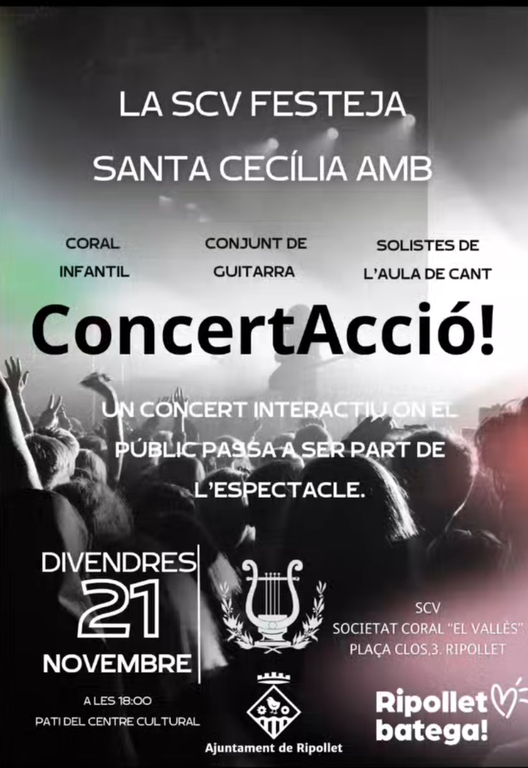 Compartir: ConcertAcció Facebook Twitter Whatsapp Correu electrònic Llegir més 21/11/2025 ConcertAcció A les 18 h, al pati del Centre Cultural Pati del Centre Cultural