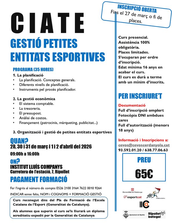 Data límit d'inscripció: 27 de març del 2026, o fins que s'esgotin places.